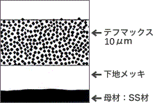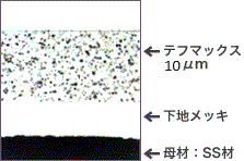 テフマックス(フッ素含有めっき)とは、フッ素樹脂を低分子化微粒化および完全フッ素化し、カチオン系界面活性剤を加えたニッケルメッキ浴中に分散させ、新しい分散メッキ法により生成される金属薄膜です。